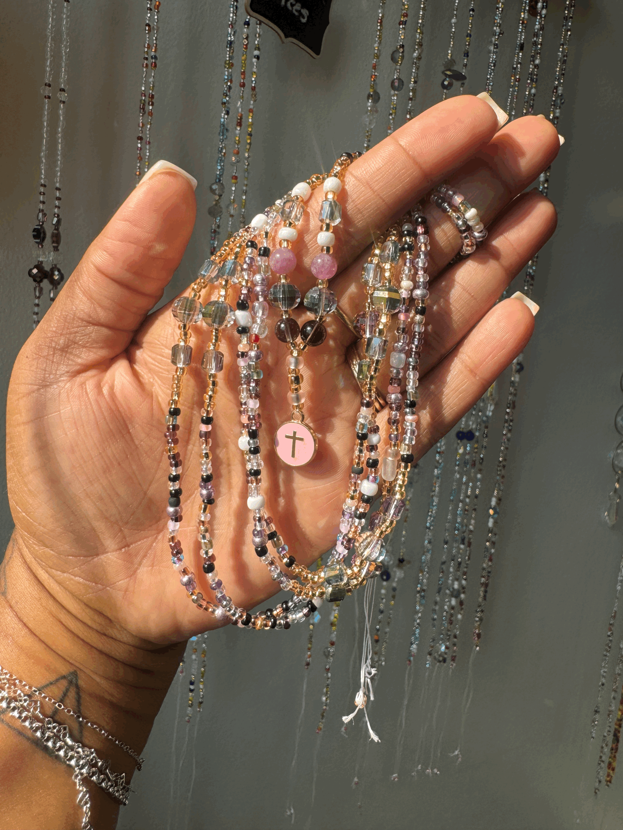 Each strand is hand-patterned with sacred intention, featuring crystals and colors chosen for emotional recovery, clarity, and protection. These are not accessories—they are energetic tools. They help you soften without breaking, release without force, and come back to yourself without guilt.